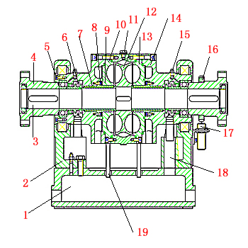 水力測功機其結構是由一架于滾動軸承上可擺動的外殼和架于主軸上的轉子組成。動力機輸出的機械能在這里轉化為熱能,并有進入殼體的水吸收而排出帶走。轉子凹坑與左右側殼凹坑形成工作腔,使水產生渦流,帶走熱能。