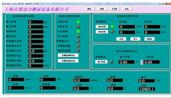 控制系統與測功機負載控制閥和發動機油門執行器相連,實現恒轉速、恒位置的控制?墒謩硬僮鳌?稍O定報警,并將試驗數據和結果儲存、打印。