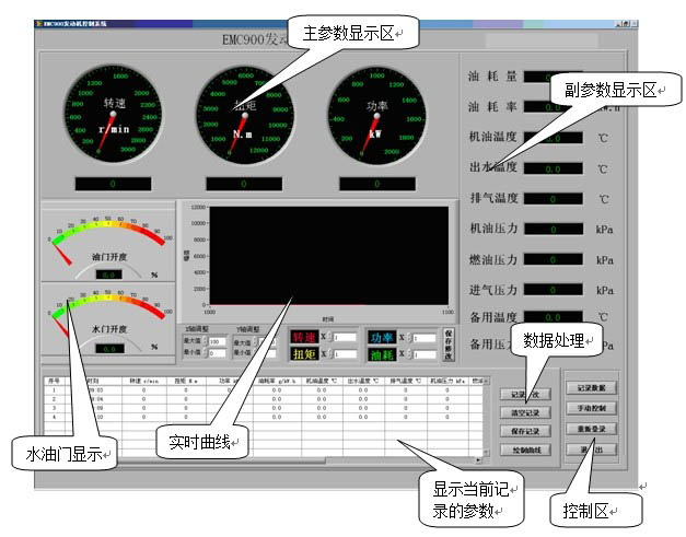 1、測試參數:轉速、扭矩、功率、排氣溫度、機油溫度、機油壓力、出水溫度、油耗率